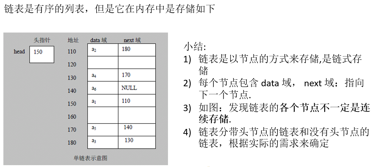 四.链表 4.1 链表(Linked List)介绍 在内存中不是连续存储的